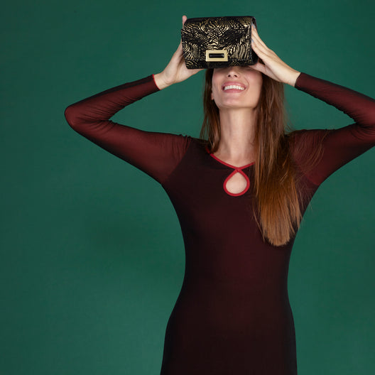 Third generation Italian artisans handcraft Ella’s collection from the finest leathers and exotic skins. Each of her modern designs is a nod to vintage style and silhouette, complete with semi-precious stone, stream­lined hardware and superb function.
